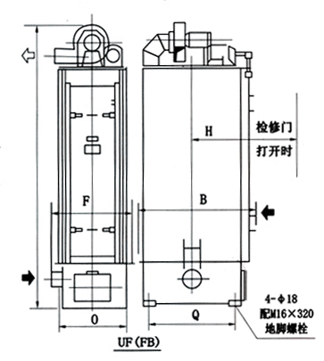 UF單機除塵器主(zhǔ)要尺寸:
